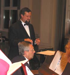 Um 18.00 Uhr wurde es Ernst. Die Sängerinnen und Sänger hatten schon die Chorkleidung angezogen und sammelten sich in der Hotelhalle. Nach etwa 600 Meter Fußweg erreichten wir den Sophiensaal, in dem das Konzert stattfinden sollte. Dort wurde angesungen. Interessant war der erste Kontakt zwischen unserem Chor und dem Chorleiter der „Liedertafel“, Herrn Eberl, der sowohl in seiner Gestik als auch auf dem Piano ein sprühendes Temperament ausstrahlte und damit zunächst Rolf Pohle und uns irritierte.