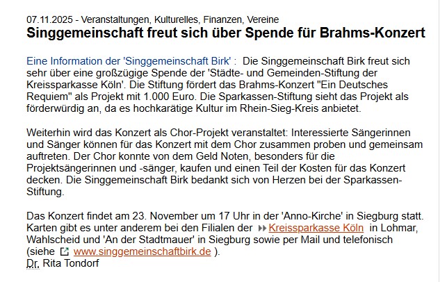 lohmar.info am 22.11.2022 – Vereine, Soziales, Kulturelles, Veranstaltungen